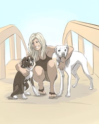 It ALL began with Tag and Pompeii, two extraordinary trick dogs, who earned worldwide recognition for awe-inspiring skills and abilities. They also became recognized from a well sought after Illustration, illustrated by Morgan Spicer of Bark Pointe Studio. These remarkable canines have not only dazzled audiences but also successfully completed the rigorous training and certification program offered by Do More With Your Dog!. Their remarkable achievements and unwavering dedication to their craft have solidified status as top-tier trick dogs in the global canine community.